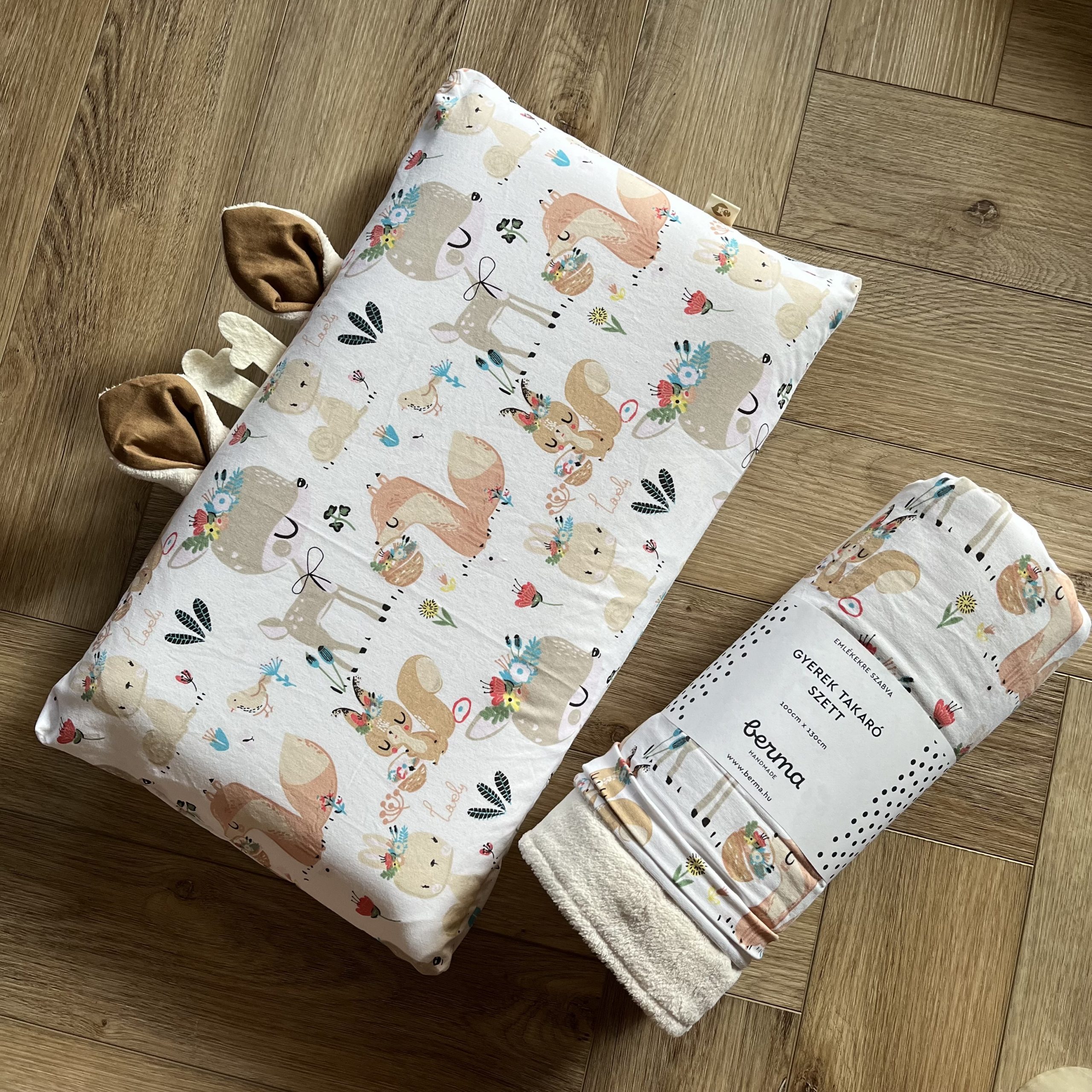 – takaró (3 évszakos vastagságú: pamut-wellsoft, pamut-polár vagy pamut-minky) 100 cm x 130 cm (+ – 5 cm)
